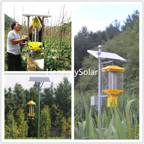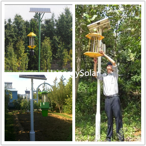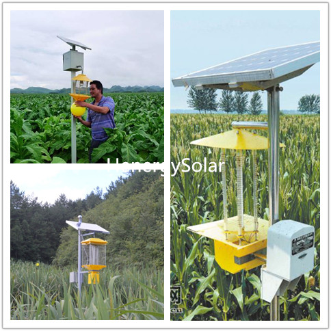 太陽能光伏防蟲害系統(tǒng)是利用太陽能電池板作為用電來源,其將白天太陽能發(fā)的電貯存起來,晚上放電給殺蟲燈具,供其工作。太陽能光伏防蟲害系統(tǒng)是利用365±50nm波長紫外光對昆蟲具有激備較強的趨光、趨波、趨色、趨性的特性原理,確定對昆蟲的誘導波長,研制專用光源,利用放電產(chǎn)生的低溫等離子體,紫外光輻射對害蟲間生的趨光興奮效應,引誘害蟲撲向燈的光源,光源外配置高壓擊殺網(wǎng),殺死害蟲,使害蟲落下專用的接蟲袋內(nèi),達到滅殺害蟲的目的。