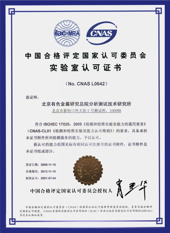 當(dāng)前位置:檢測與校驗(yàn) >> 檢測實(shí)驗(yàn)室 >> 北京有色金屬研究總院分析測試技術(shù)研究所