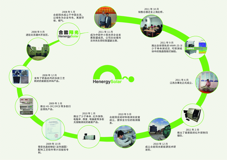 北京合能陽光新能源技術有限公司,由肖宗杰先生成立于2008年,公司注冊資本1000萬,先后成立了硅材料檢測實驗室和新能源技術研發(fā)院,提供從硅料、單晶硅棒、多晶硅塊、硅片、電池片乃至組件電站全方位的檢測服務。針對客戶實際情況制定適合的檢測方案。 公司的多晶鑄錠檢測設備已被包括英利、海潤、賽維LDK、晶科等數(shù)百家家光伏企業(yè)采用。產(chǎn)品出口美國、歐洲等國家地區(qū),和海外建立產(chǎn)品加工合作關系。