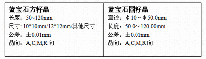 標準參數(shù)-進口Monocrystal高品質(zhì)藍寶石籽晶: